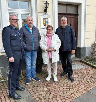 Mit dem Erlös des Benefiz-Neujahrskonzertes konnte zwei Mendiger Initiativen unterstützt werden (von links): Lothar Rink, Leiter der Polizeiinspektion Mayen, Frank Neideck, Nachbar in Not; Hiltrud Surges, „Aktion Regenbogen“ und Stadtbürgermeister Achim Grün.
