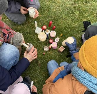 So wanderten zwei Klassen der Schule in die Thürer Wiesen, wo sie nicht nur Rehe und Greifvögel beobachten konnten, sondern auch die Lieder verschiedener Singvögel hörten. Bei einer Rast wurden Kerzen entzündet und gemeinsam das Friedenslied Shalom Chavarem angestimmt.