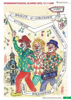 Damit der Rosenmontagszug möglichst reibungslos und ohne größere Lücken ablaufen kann, wird in den Straßen entlang des Zugweges ein Halteverbot ausgesprochen. Entsprechende Beschilderung weist auf den genauen Zeitraum hin, in dem dieses Halteverbot gilt. Die Anlieger werden um Einhaltung und Verständnis für diese zeitlich befristete Maßnahme gebeten. Letztlich dient sie auch dem Schutz des Eigentums und ist für eine zügige und gefahrlose Durchfahrt insbesondere der Festwagen dringend notwendig.