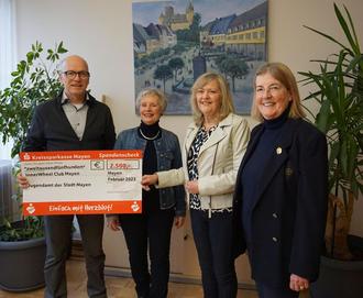 MAYEN. Erneut unterstützt der Inner Wheel Club Mayen das Stadtjugendamt - diesmal mit einer Spende in Höhe von 2.500 Euro. Die Spendengelder werden bedürftigen und finanziell schwächeren Familien zu Gute kommen, die dringend Hilfe benötigen. Oberbürgermeister Dirk Meid nahm die großzügige Spende entgegen und bedankte sich - auch im Namen des Stadtjugendamtes - bei den engagierten Frauen.