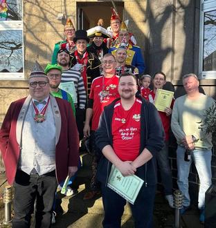 Nachdem sich die Gäste am hervorragenden Frühstücksbuffet gestärkt hatten, begrüßte Kommandeur Tim Herrmann alle Gäste und den Hofstaat mit einem Dreifach Mennisch Ahoi. Ein besonderes Jubiläum gibt es in diesem Jahr zu feiern - Gardist und Sprengmeister Dirk Reutelsterz ist 25 Jahre aktiver Gardist. Dirk ist bei fast allen Terminen der Garde dabei und hat in diesem Jahr erfolgreich den stv. Kommandeur Mark vertreten, der Hofmarschall im Hofstaat ist. Die Prinzengarde bedankte sich mit einem Präsent bei Dirk für seine außerordentlichen Verdienste für die Garde.