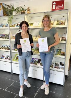 Am 03. April 2025 haben die Mitarbeiter der Touristik Julia Assenmacher und Franziska Bast erfolgreich an der Schulung zur Prüferin für das Zertifikat „Qualitätsgastgeber Wanderbares Deutschland“ teilgenommen. Sie sind nun berechtigt, Betriebe nach den anerkannten Qualitätskriterien für wanderfreundliche Unterkünfte und Gastronomiebetriebe zu überprüfen.