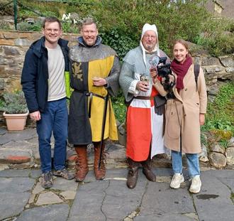 „Warum hat die Burg Thurant 2 Türme?“ Das war die grundlegende Frage beim Drehtermin des SWR um ein lokales „Geheimnis“ im Rahmen eines neuen Sendeformats der Landesschau RLP. Die Dreharbeiten des Aufnahmeteams (Jörn Michaely und Hannah Liesenfeld) begannen mit einem genehmigten Drohnenüberflug der Burganlage vom Bleidenberg aus.