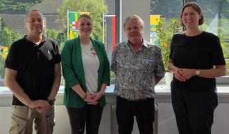 v.l.n.r. Büroleiter Rüdiger Beckendorf, Teilbereichsleiterin Jasmin Metzing, Birger Boos, Bürgermeisterin Kathrin Laymann