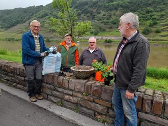 Unsere Mitglieder Helmut Christ, Paul Fischer, Oswald Arens und Walter Mertes haben die Blumenschalen auf der Moselmauer des Moseluferwegs wieder zum Leben gebracht.
