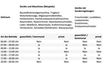 Die nachstehende vereinfachte Darstellung soll ohne Ausnahmeregelungen beispielhaft die Betriebszeiteinschränkungen von Geräten und Maschinen darstellen: