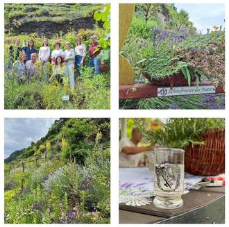 Gemeinsam besuchte das Team den Razejungewingert in der Lehmener Würzlay, wo Dieter Möhring von den Lehmener Razejungen Wissenswertes über die besondere Flora und Fauna der ehemaligen Weinbergsterrassen vermittelte. Außerdem wurden Köstlichkeiten wie Wein und Pesto aus dem Kräutergarten angeboten, während Lavendel und Kräuter herrliche Düfte verströmten.