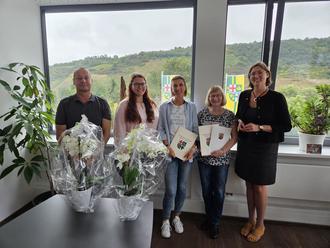 v.r.n.l. Bürgermeisterin Kathrin Laymann, Karla Löhr, Simone Schmitz, Jessica Hermes (Sachgebietsleitung), Büroleiter Rüdiger Beckendorf