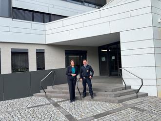 v.l.n.r.: Bürgermeisterin Kathrin Laymann und Bezirksbeamter Marco Wohlgemuth