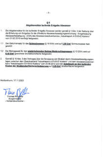 2. Gemäß § 16 Abs. 3 des Vertrages über die Benutzung von Straßen durch Abwasserbeseitigungsanlagen zwischen dem Zweckverband "Industriepark A 61/GVZ Koblenz" und dem Abwasserzweckverband "Industriepark A 61/GVZ Koblenz" vom 24.06.2010 wird der Anteilssatz an den laufenden Kosten der Straßenoberflächenentwässerung auf 0,25 €/m² Straßenfläche festgesetzt.