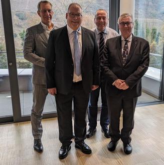vlnr: 2. Stellvertretender Verbandsvorsteher Maximilian Mumm, Werkleiter Stefan Friedsam, 3. Stellvertretender Verbandsvorsteher Johannes Bell, Verbandsvorsteher Dr. Alexander Saftig