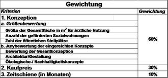 Mit ihren Konzeptionen können Sie bis zum 28.04.2023 am Interessenbekundungsverfahren teilnehmen. Ihr Lösungsansatz sollte sich an den Kriterien incl. Gewichtung orientieren: