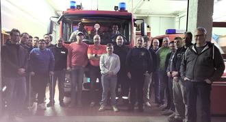 Auf all diese Fragen fand Rainer anhand vieler Beispiele auch aus seinem eigenen Feuerwehrleben eine Antwort und schaffte es so, die anwesenden Kameraden zum Nachdenken anzuregen. In jeder Feuerwehrschutzausrüstung steckt ein Mensch - ein Mensch, der durch seinen ehrenamtlichen Feuerwehrdienst neben seinem eigenen Alltag alles dafür gibt, seinen Mitmenschen im Notfall helfen zu wollen. Gerade im Einsatzgeschehen ist es daher unerlässlich, dass man sich auf seine Feuerwehrkameraden verlassen kann und das innerhalb der Mannschaft eine enorme Portion Vertrauen vorhanden ist - denn die Arbeit der Feuerwehr steht unter dem Motto „Einer für Alle - Alle für Einen“ und vereint Kameradschaft, Zusammenhalt und Teamwork. Der zuvor ausgeteilte Schwamm sollte durch das „Aufsaugen“ der genannten Werte und Tugenden alles versinnbildlichen und die Feuerwehr als eine starke Einheit und Mannschaft darstellen. Im Anschluss an den Vortrag bedankte sich Wehrführer Dieter Stein bei Rainer für seine wichtigen Worte und überreichte ihm ein kleines Präsent.