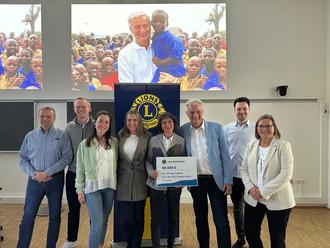 Nach einem Vortrag von Reiner Meutsch an der WHU am 19. März überreichten WHU-Angehörige ihm stellvertretend für den Lions Club der Hochschule einen Scheck über die beachtliche Summe von 40.000 Euro.
