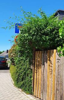 | 2. | Schneiden Sie Hecken, Sträucher und Bäume in Bereichen von Straßen, Einmündungen und Kreuzungen so weit zurück, dass Sichtbehinderungen und Verkehrsgefährdungen ausgeschlossen sind. Achten Sie darauf, dass die Anpflanzungen nicht über die Grundstücksgrenze hinausragen. |