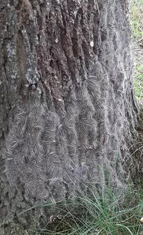Der Eichenprozessionsspinner befällt fast ausschließlich nur Eichen. Befallene Areale sind zu meiden, Raupen und Gespinste bitte nicht berühren.