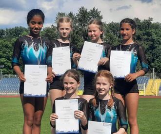 Überglücklich durfte Solea Alsbach dann bei der Siegerehrung die Silbermedaille in Empfang nehmen - ein toller Erfolg für das 11-jährige Allround-Talent, das neben Turnen auch noch Rhythmische Sportgymnastik und Fußball betreibt. Hervorzuheben ist auch der 6. Platz von Mira Richter, eine der jüngsten Teilnehmerinnen überhaupt und Beste ihres Jahrgangs, und Platz 11 der sprint- und sprungstarken Pauline Unckell. Insgesamt hat die Mehrkampf-Premiere großen Spaß gemacht und allen Mädchen einmal neue sportliche Perspektiven eröffnet - mal schauen, wer nächstes Jahr wieder dabei ist!