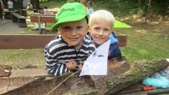 Die angehenden Schulkinder der städt. KiTa verbringen im Wambachtal drei spannende und abwechslungsreiche Wochen an der Wambachhütte und im umliegenden Waldbereich.