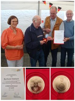 Aus der Hand des regionalen Vertreters des Partnerschaftsverbands Rheinland-Pfalz/Burgund, Werner Münzel, erhielt er die seltene Auszeichnung der Verdienstmedaille in Gold mit entsprechender Urkunde vom Partnerschaftsverband.