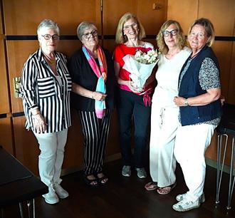 Der Seniorenbeirat (v.l.: Ulrike Kray, Inge Schneider, Gabriele Petersen und Monika Steiff) dankt der Hörgeschädigtenpädagogin Frau Eikmeier-Stindt (Bildmitte).