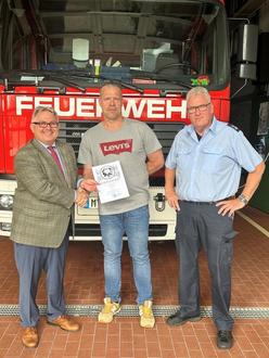 Von links: Bürgermeister Schneider, Wehrführer Itschert und Wehrleiter Schemmer