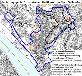 Auf der Grundlage des § 144 Abs. 3 Baugesetzbuch (BauGB) in der zurzeit geltenden Fassung wird unter dem Vorbehalt des jederzeitigen Widerrufs nach Maßgabe des § 49 VwVfG für das durch Satzung der Stadt Vallendar förmlich festgelegte Sanierungsgebiet „Historischer Stadtkern“ unter dem Vorbehalt der Zulässigkeit der Vorhaben gemäß dem gegebenenfalls rechtskräftigen Bebauungsplan oder sonstiger örtlicher Bauvorschriften -die sanierungsrechtliche Genehmigung für folgende sanierungsrechtlich genehmigungspflichtige Vorgänge vorweg erteilt: