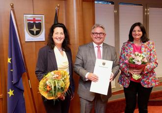 Nach erfolgter Wahl gratulierte Bürgermeister Adolf T. Schneider der neu gewählten Ersten Beigeordneten Renate Münz und der ebenfalls neu gewählten weiteren Beigeordneten Klaudia Follmann-Muth persönlich und dem in Abwesenheit gewählten weiteren Beigeordneten Wilfried Münz telefonisch. Renate Münz und Klaudia Follmann-Muth leisteten im Anschluss im Sitzungssaal des Rathauses der Verbandsgemeinde Vallendar ihren Amtseid und erhielten daraufhin ihre Ernennungsurkunden aus der Hand des Bürgermeisters.
