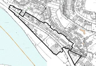 In dem nachfolgenden Auszug aus der Flurkarte ist der Geltungsbereich des einfachen Bebauungsplans „Nördliche Rheinstraße“ durch eine fett gedruckte Linie umgrenzt.
