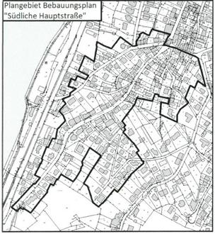 Im beigefügten Auszug aus der Flurkarte ist das Gebiet des Bebauungsplans „Südliche Hauptstraße" durch eine fett gedruckte Linie umgrenzt.