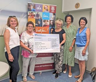 „Große Freude beim Sozialdienst katholischer Frauen (SkF) Koblenz. Die Niederwerther Frauengemeinschaft überreichte einen Scheck in Höhe von 500 Euro zur Unterstützung des Notfallzimmers. Die Spendensumme wurde beim traditionellen Frühlingsfest auf Niederwerth gesammelt. Durch den Verkauf von Kaffee und selbstgebackenem Kuchen sowie einer Tombola kam der stolze Betrag zusammen.