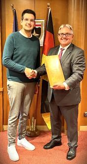 Da bei der offiziellen Verleihung der Bürgermeister der Verbandsgemeinde Vallendar Adolf T. Schneider nicht teilnehmen konnte, hat er in einem Folgetermin auch noch einmal persönlich gratuliert und seiner Freude Ausdruck verliehen über das weit überdurchschnittliche Engagement von Timo Krämer für die Allgemeinheit.