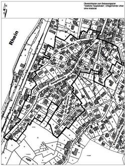In dem nachfolgenden Auszug aus der Flurkarte ist der Geltungsteilbereich des Bebauungsplans „Südliche Hauptstraße“ durch eine fett gedruckte Linie umgrenzt.