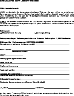 Falls Sie die Vorteile eines Einzugsverfahrens nutzen möchten, füllen Sie das nachfolgende SEPA Lastschriftenmandat (Siehe Seite XXX) aus und reichen uns dieses unterschrieben ein.