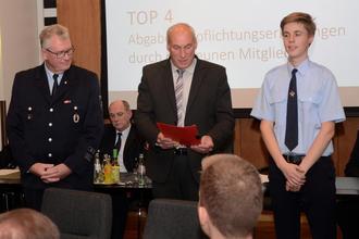 Wie in jedem Jahr konnte der Bürgermeister neue Kameradinnen und Kameraden in die Löschzüge zum ehrenamtlichen Dienst an der Bevölkerung verpflichten. Dank des großen Engagements im Bereich der Aus- und Fortbildung der Kameradinnen und Kameraden konnten auch wieder einige Beförderungen und Bestellungen erfolgen.
