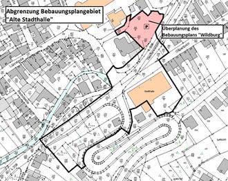 In dem nachfolgenden Auszug aus der Flurkarte ist der Geltungsbereich des einfachen Bebauungsplans „Alte Stadthalle“ durch eine fett gedruckte Linie umgrenzt.