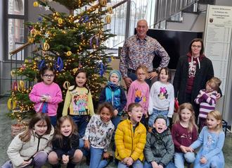 Die Kinder des Katholischen Kindergartens Urbar schmückten dieses Jahr den Weihnachtsbaum im Rathaus