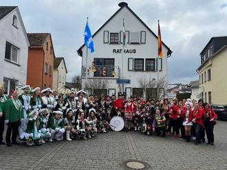 Mit dem Vorstand und den Präsidenten der Karnevalsgesellschaft Grün-Weiß, welche in diesem Jahr das 100-jährige Bestehen feiern können, zog Prinz Christian I. von der Osterburg über dem Rheintal mit den Pagen Kathrin & Kathrin, Hospes Bina, Mundschenk Joffrey und Schatzmeister Mirko ins Rathaus ein. Da sie am 15. Februar das Rathaus im Sturm eingenommen hatten, fühlten sie sich hier bereits wie zuhause. Auch die lieblichen Örmser Möhnen rückten in kompletter Formation und ganz in Rot ein.
