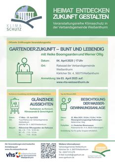 Zur offiziellen Eröffnung der Reihe „Heimat entdecken - Zukunft gestalten“ konnte die VG Weißenthurm die prominente Gartenbau-Expertin Heike Boomgaarden gewinnen. Gemeinsam mit dem früheren Leiter der Gartenakademie RLP, Werner Ollig, stellt die aus Funk und Fernsehen bekannte Fachfrau auf gewohnt locker-unterhaltsame, informative Art den Garten der Zukunft vor - jede Menge Gestaltungsideen für das heimische Grün inklusive. Informationen und Tipps zum ökologisch wertvollen, bunten und lebendigen Garten präsentiert das Experten-Duo am 4. April 2025 um 17 Uhr im Ratssaal der VG.