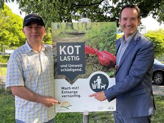 Der Hinweis an Hundehalterinnen und -halter, die Hinterlassenschaften ihrer Vierbeiner zu beseitigen, steht nun auch am Eingang des Parkplatzes neben dem Rathaus der VG Weißenthurm. Auf dem angrenzenden Weg gehen häufig Bürgerinnen und Bürger mit ihren Hunden spazieren. „Die VG hat nicht viele Flächen, daher nicht viele Möglichkeiten, sich an der Kampagne zu beteiligen, aber an der Stelle hier macht es Sinn“, betont Bürgermeister Thomas Przybylla.