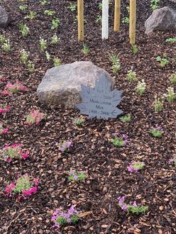 Kerzen und Blumenschmuck können im Bedarfsfall in der kleinen Kapelle abgelegt werden. Die Kennzeichnung der Urnengrabstätte besteht - wenn dies gewünscht ist - aus einem stilisierten Blatt aus wetterfestem Cortenstahl, welches mit Namen, Geburts- und Sterbejahr beschriftet werden kann. Dieses wird fest im Boden verankert.
