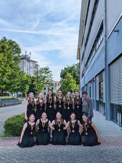 Die Tänzerinnen der Gruppe "Herz Terz" unter Leitung von Alexandra Huiskens des Mittelrhein-Gymnasiums Mülheim-Kärlich haben ihr Können im Finale des Bundeswettbewerbs „Tanzen in der Schule“ gezeigt. Zuvor hatten sich die elf Schülerinnen mit dem 1. Platz beim Jugend-Mannschaftspokal 2023 in Ingelheim für den Bundeswettbewerb qualifiziert.