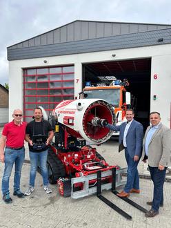 Denn die robuste Löschraupe kann ebenso auf Straßen wie auf Gleisanlagen eingesetzt werden, unterstützt Bergungsarbeiten und das Entfernen von Hindernissen und verfügt über ein Belüftungssystem zur Entrauchung von Gebäuden, Industriehallen oder Tiefgaragen. „Diese Technologie ist ein weiterer, großer Fortschritt für unsere freiwillige Feuerwehr“, erklärte Przybylla, den die technischen Möglichkeiten des smarten Geräts begeisterten. Der Bürgermeister wies darauf hin, dass die Sicherheit der ehrenamtlichen Feuerwehrleute an oberster Stelle stehe: „Mit diesem Löschroboter haben wir eine zusätzliche Möglichkeit, gefährliche Situationen zu bewältigen“, betonte er. Gleichzeitig dankte der Verwaltungschef dem VG-Rat, der der Anschaffung des modernen Löschunterstützungsfahrzeugs im vergangenen Jahr zugestimmt hatte. „Mit diesem innovativen Gerät zeigt die Verbandsgemeinde Weißenthurm, wie neueste Technologie die Arbeit der Feuerwehrkameradinnen und -kameraden sinnvoll unterstützen kann und setzt ein Zeichen für modernen Bevölkerungsschutz“, bekräftigte Przybylla.