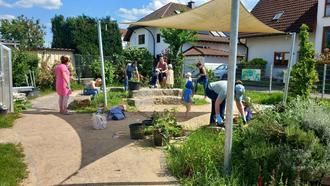 In der Kita Lehpfad haben sich Aktionsgruppen von Kindern, Eltern und Erzieherinnen zusammen getan, um das Außengelände, die Beete und das Gewächshaus der Kita zu erweitern und zu erneuern. Mit dem Einsatz der super motivierten Helfern kann auf eine schöne Ernte gehofft werden.