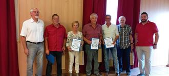 Ortsbürgermeister Norbert Bahl dankte der Vereinsführung und allen MitarbeiterInnen und HelfernInnen für die geleistete Arbeit und betonte die besondere Bedeutung des Sports für die Menschen in der Gemeinde.der für 25-,40-, und 50-jährige Vereinstreue und überreichte den Geehrten jeweils eine Urkunde und eine entsprechende Anstecknadel. Schließlich wurden 5 Mitglieder zu Ehrenmitgliedern ernannt.