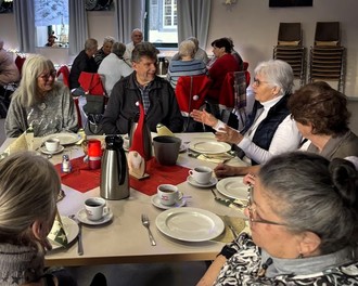 Für besondere Momente sorgte Christa Schnitzler, die mit einer besinnlichen Geschichte Raum für Reflexion gab und die Bedeutung des Miteinanders in den letzten Tagen des Jahres hervorhob. Im Sinne gegenseitiger Wertschätzung wurde anschließend gewichtelt. Der beliebte Brauch, sich gegenseitig anonym zu beschenken, festigte den freundschaftlichen Charakter der Veranstaltung. Anschließend sorgten Spiele wie Jakkolo, Heckmeck, Quirkel, Skip-Bo oder Rummycub für Unterhaltung, spielerische Konkurrenz und zahlreiche Lacher und stärkten so das Gefühl von Zusammengehörigkeit. Überall herrschte eine gemütliche, entspannte Stimmung, die das Ziel des Treffens, Einsamkeit zu vertreiben und die Gesellschaft wieder näher zusammenzubringen, eindrucksvoll bestätigte. „Die Premiere des Begegnungsfrühstück zum Jahresausklang war rundum gelungen“, betonte Nina Ketzner vom Team des BürgerSTÜTZPUNKT+. Neben der hohen Teilnehmerzahl hätten besinnliche Impulse und gemeinschaftliche Aktivitäten dazu beigetragen, das Miteinander zu stärken und das Jahr in guter Gesellschaft ausklingen zu lassen.