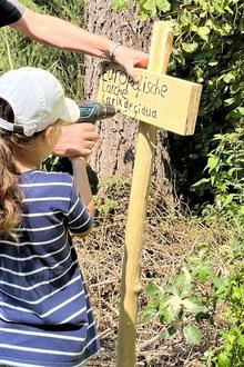 Zur Stärkung gab es mittags frisch gegrillte Wildbratwürstchen, die nach so viel aktiven Tun besonders lecker schmeckten. Am Nachmittag packten die Eltern mit an. Gemeinsam stellte die Gruppe die Pfähle auf und brachte die entsprechenden, zuvor gestalteten Schilder an. Mit Muskelkraft und Teamarbeit standen bald alle acht Baumpfähle mit der informativ-individuellen Kennzeichnung. Eine Art kleiner Waldlehrpfad ist entstanden, den die Kinder in Zukunft immer wieder bestaunen und besuchen können. Möglicherweise wird der Pfad fortgesetzt und mit weiteren Pfählen samt Schildern versehen. „Der Waldaktivtag hat Entdeckergeist und Naturinteresse geweckt, das lebendige Bildungsangebot hat die Verbundenheit zum Wald gestärkt und das mit sichtbaren Ergebnissen, die noch lange bestehen bleiben“, fasste VG-Touristikerin Lena Beck zusammen, die den Erlebnistag organisiert hatte.