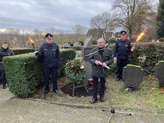 Bürgermeister Johannes Juchem gedachte in seiner Ansprache der Ereignisse vor 80 Jahren, Pfarrer Günter Vogel segnete die Stele ein, die von Fackelträgern der Freiwilligen Feuerwehr umrahmt wurde.