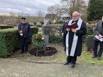 Um 16 Uhr versammelten sich zahlreiche Weißenthurmer auf dem Friedhof an einer von Geschichtsverein gestifteten Gedenkstele für die zivilen Opfer der Kriege.