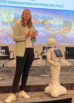 Noch bis 16. Oktober 2023 veranstaltet das Land Rheinland-Pfalz die Demografiewoche. In diesem Jahr steht die sechste Auflage der Veranstaltungsreihe unter dem Motto „Digitale Chancen für den demografischen Wandel“. Bei der Zentralveranstaltung in Mainz, an der auch Ministerpräsidentin Malu Dreyer und Digitalisierungsminister Alexander Schweitzer teilnahmen, präsentierte die Digitalisierungsbeauftragte der Verbandsgemeinde (VG) Weißenthurm den Roboter Pepper und berichtete über erste Erfahrungen und Möglichkeiten seines Einsatzes in der Verwaltung.