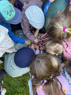 Jetzt gabs kein Halten mehr und die Kinder stürmten zur Entdeckerinsel (ein gepachtetes Wiesengrundstück der Kita „Arche Noah“), wo sich der Schatz, in Form von Süßigkeiten, befand.